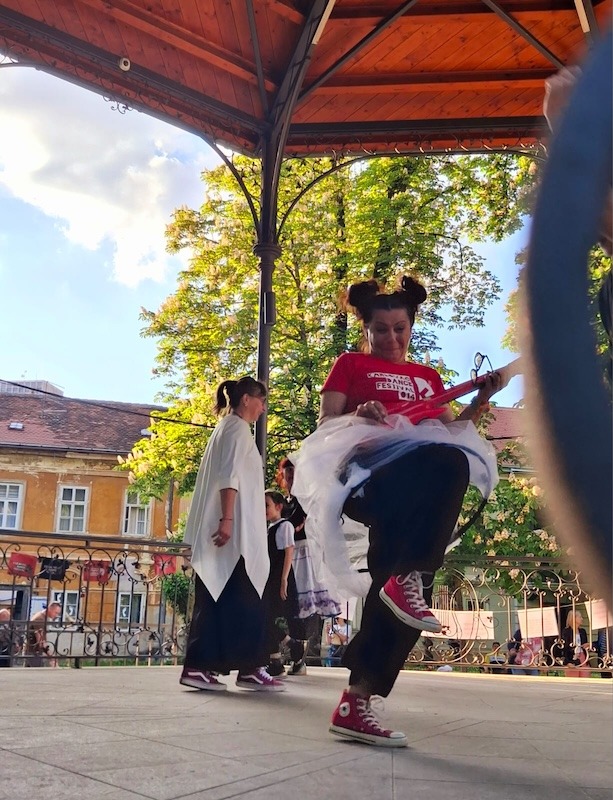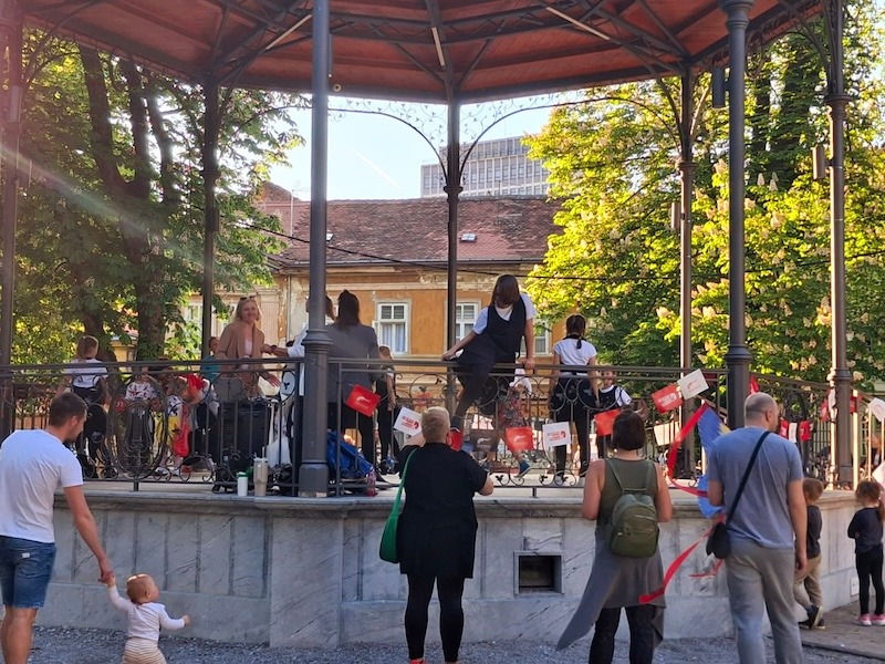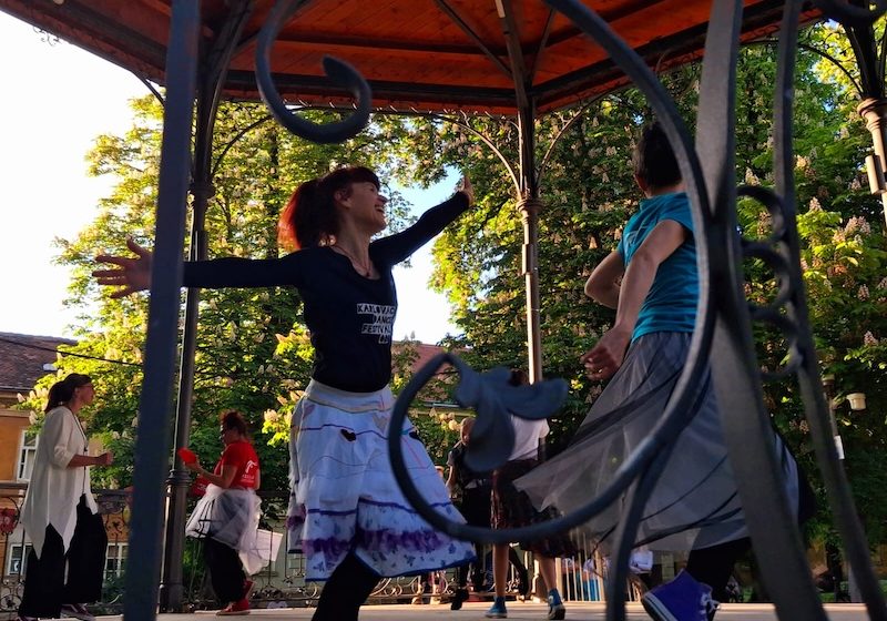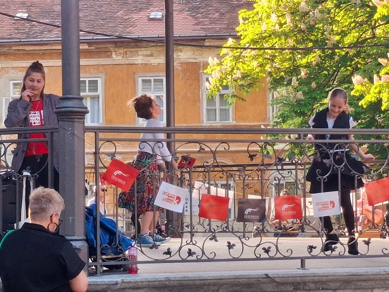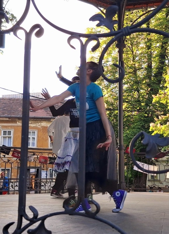 Program je obuhvatio plesne improvizacije, interaktivni performans te čitanje plesnih poruka, a događaj je dodatno obogatio neposredni kontakt s publikom na otvorenom prostoru.